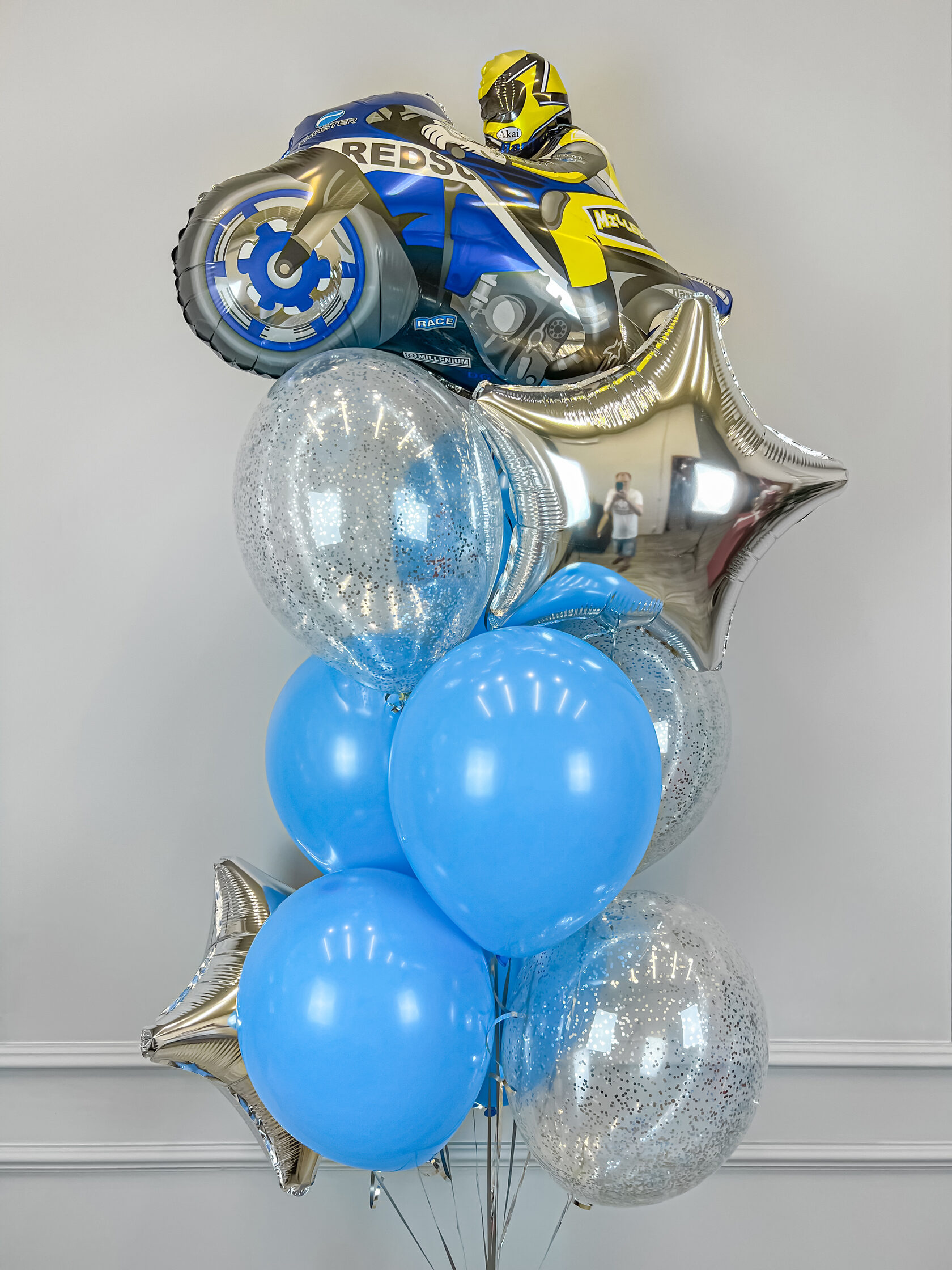 -фольгированная фигура мотоциклист синий/красный – 1 шт;