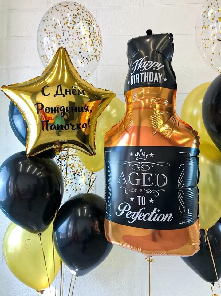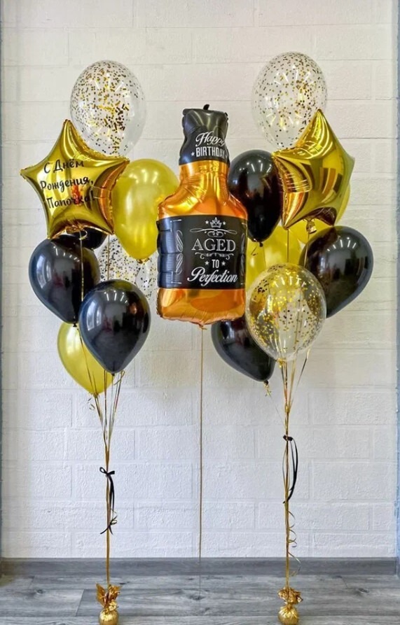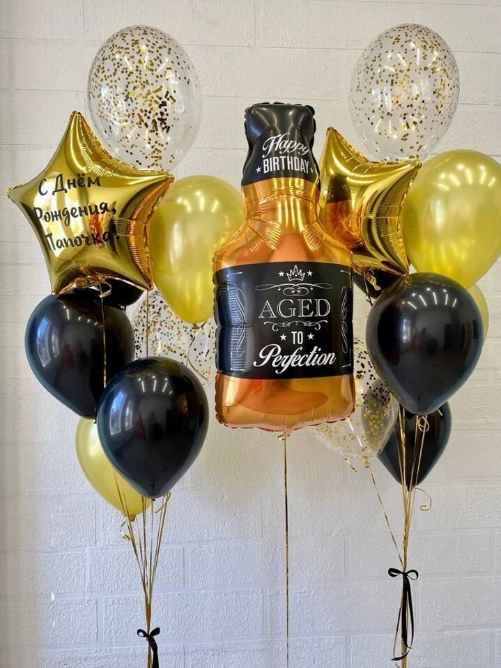 2 фонтана в золотистых тонах парню с бутылкой виски