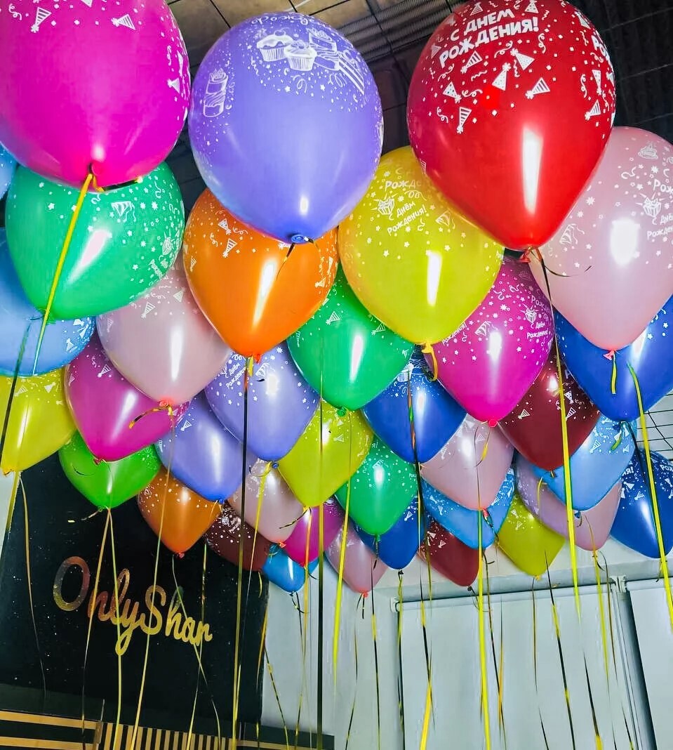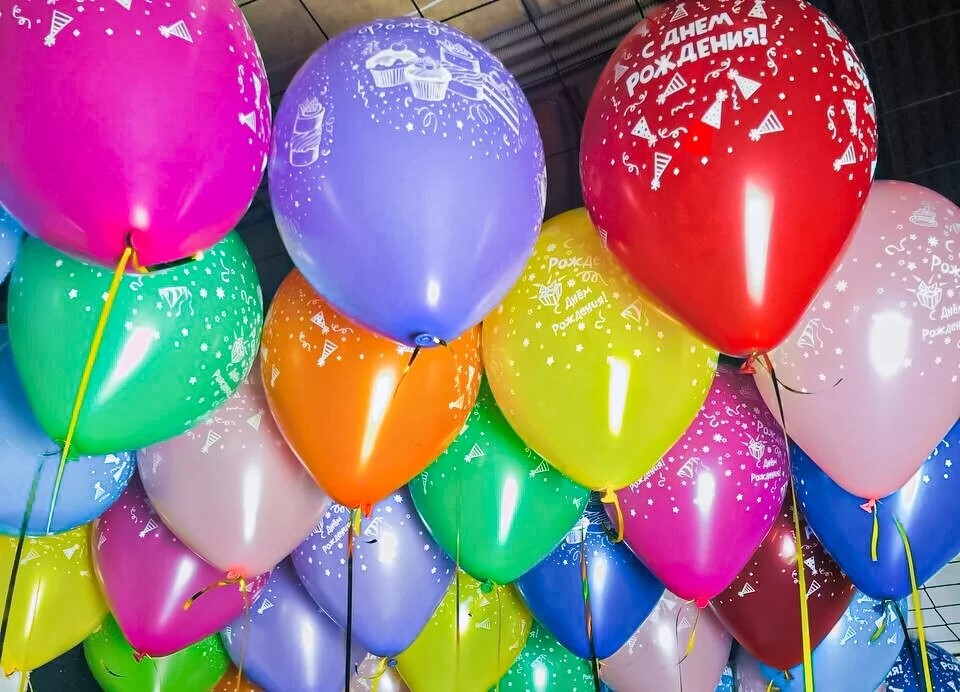 Яркие, плотные шары без постороннего запаха, премиального качества с надписью “С Днем Рождения”.