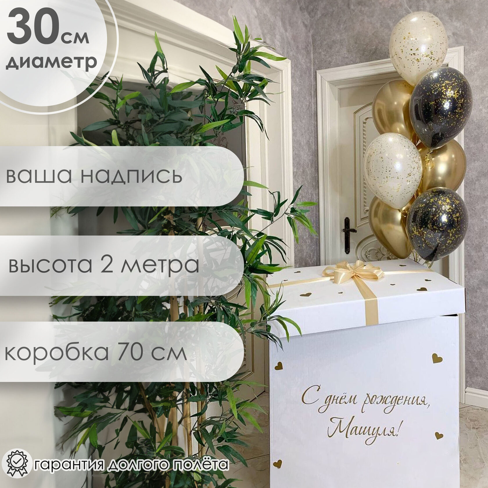 – Коробка белая с бантом и индивидуальной надписью