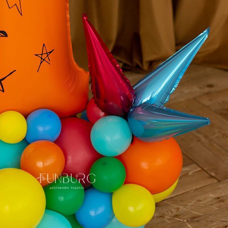 Аэромозайка c шарами в виде цифры 1 для девочки