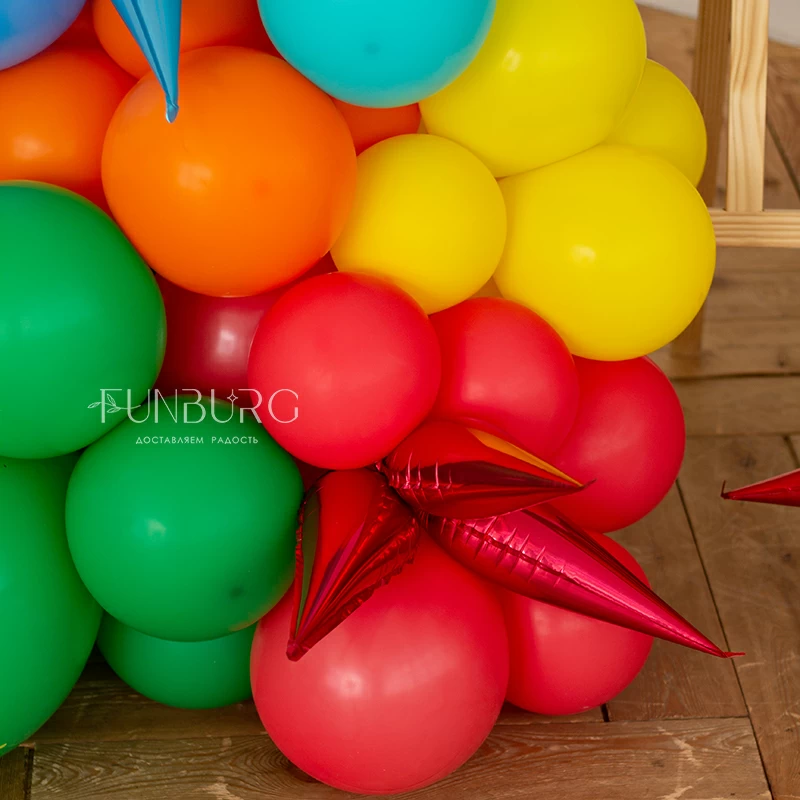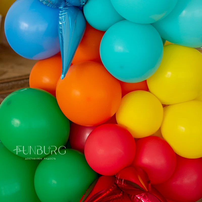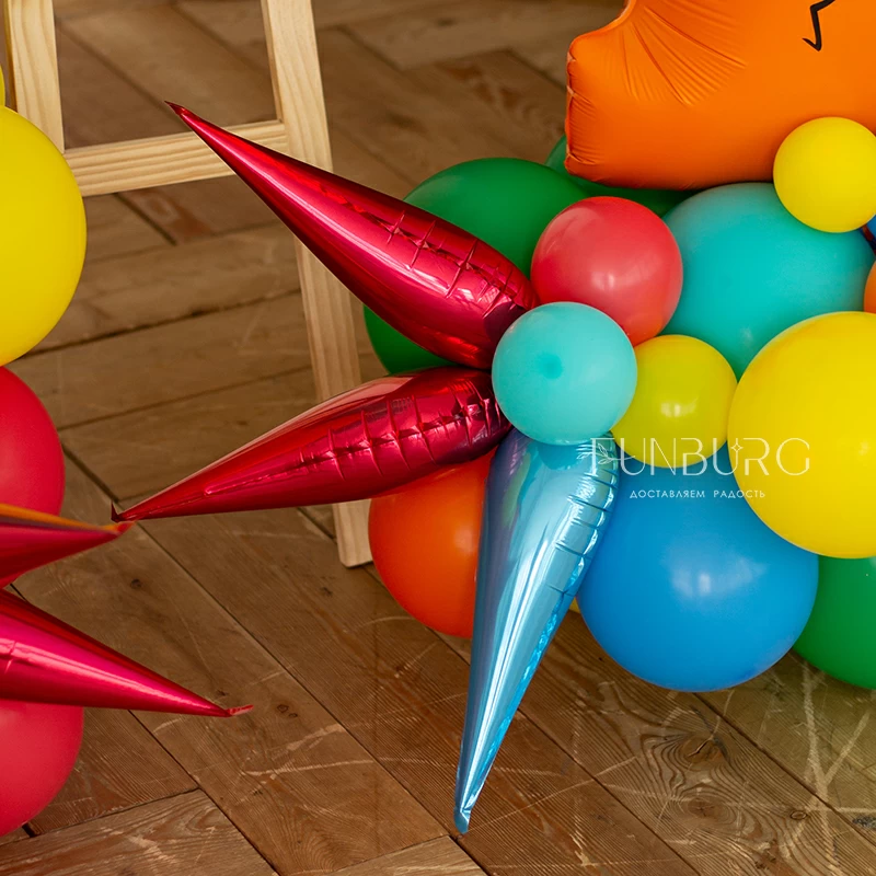 Состав фотозоны вы можете редактировать самостоятельно по своему желанию, а гирлянда из шаров может быть выполнена в любой цветовой гамме и стилистике торжества: просто подробно опишите нам все особенности, а мы подберем необходимые шарики, декор, согласуем все детали с вами и воплотим идею в жизнь!