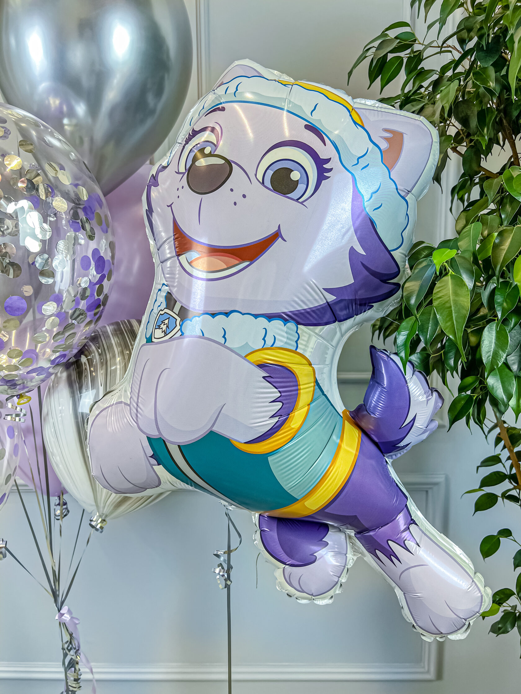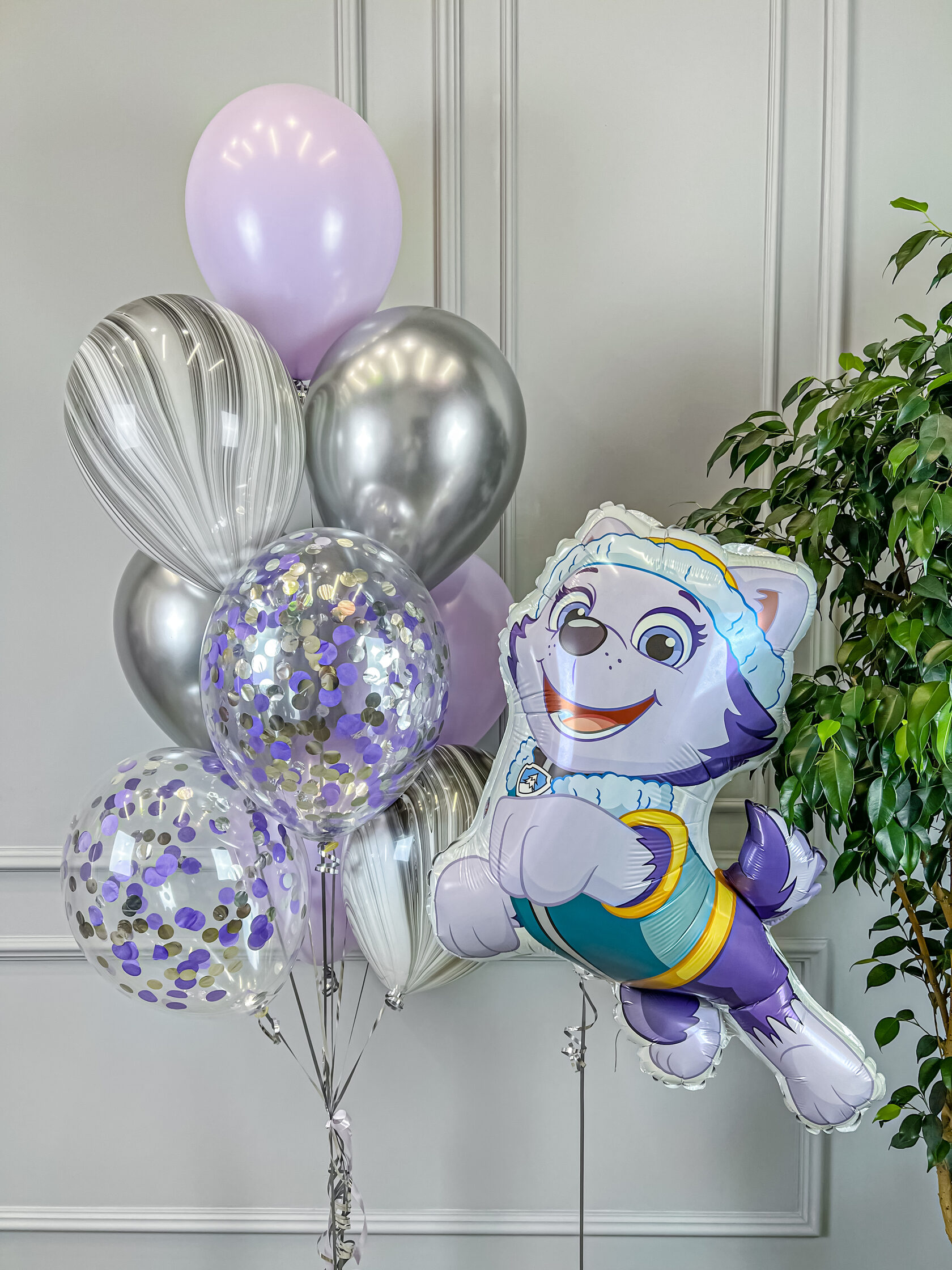 – 2 шара с конфетти (серебро + сиреневые круги)