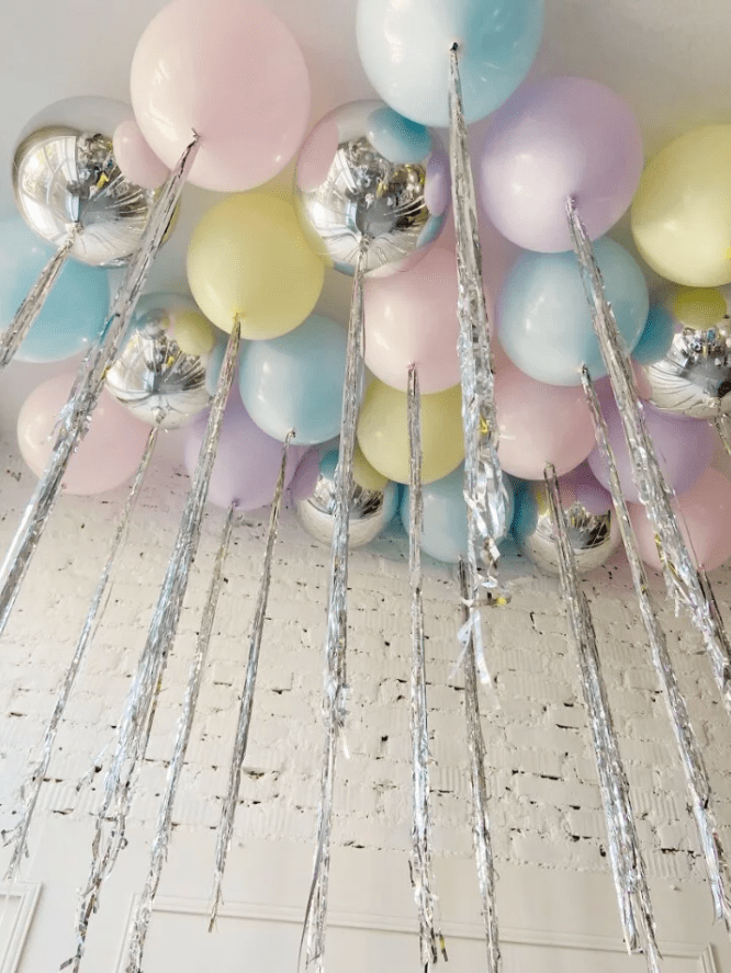 Разноцветные шары под потолок с надписью “С Днем Рождения”