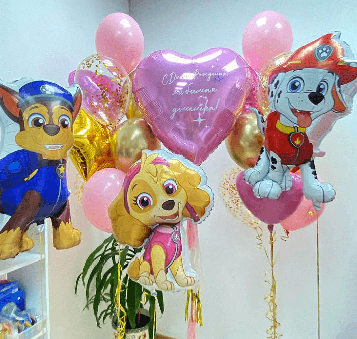 Большой набор шаров для девочки с героями мультфильма “Щенячий патруль”