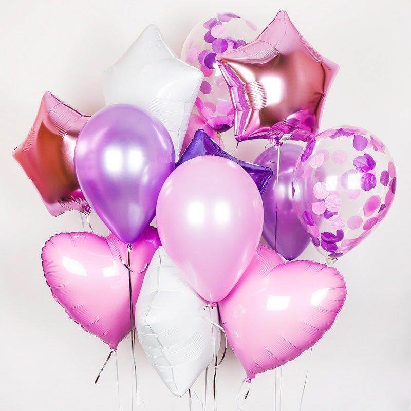 Букет из 15 воздушных шаров с фольгированными звездами для девочки