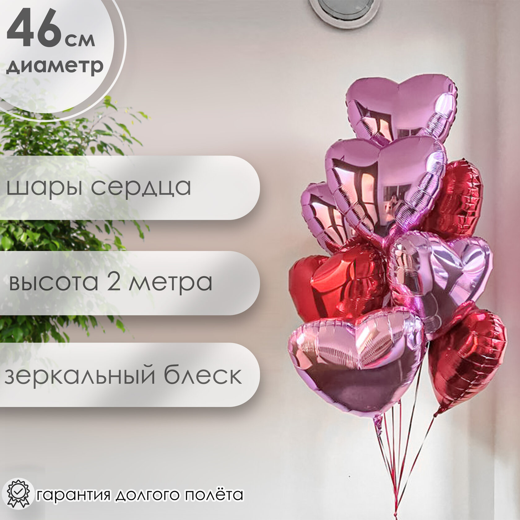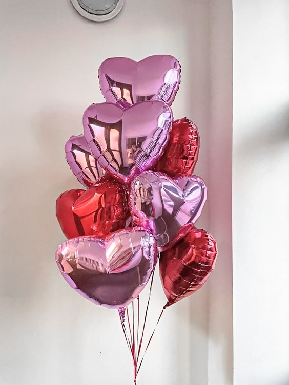 Букет из гелиевых шаров для девушки в виде розовых и красных сердец