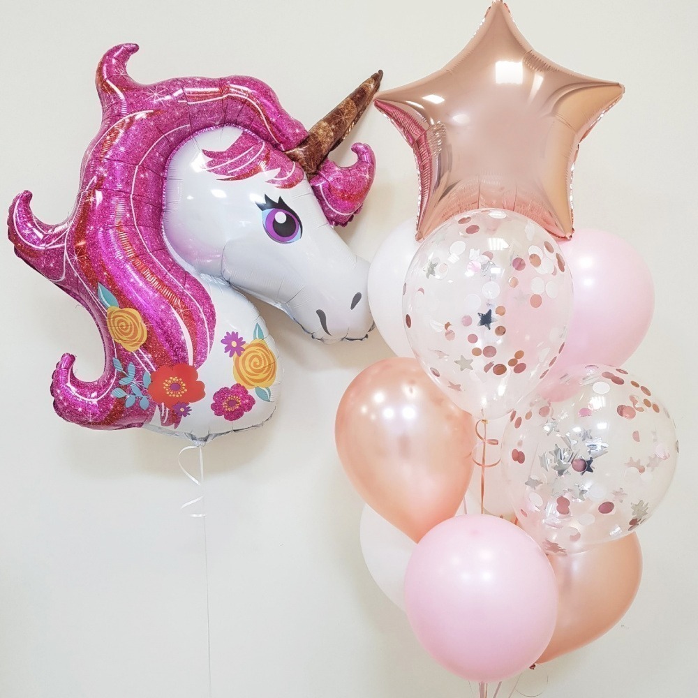 – Фольгированная фигкра “Голова единорога розовая” на грузе