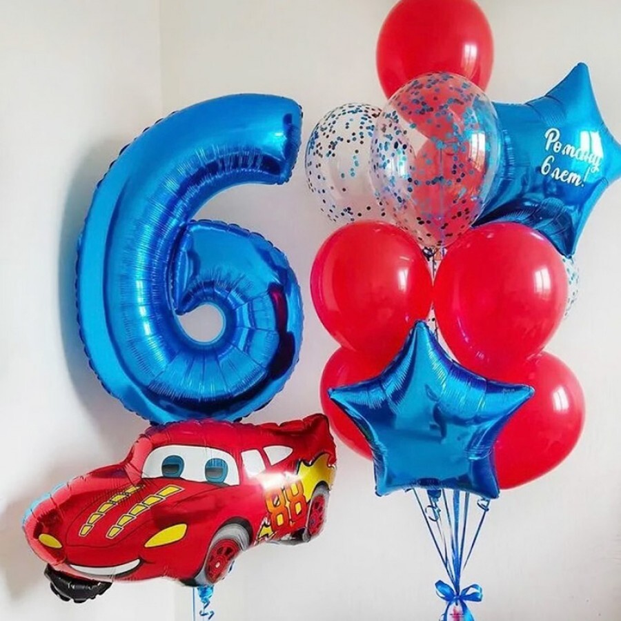 Букет шаров со звездами на 6 лет в стиле “Тачки”