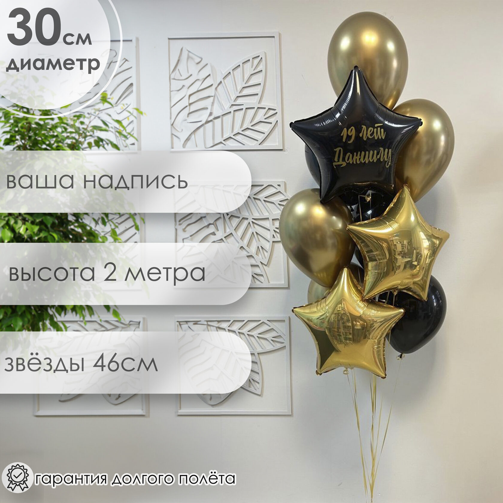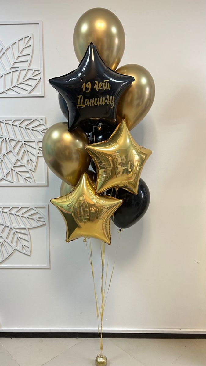 Букет шаров в черном и золотом цвете с вашей надписью на звезде