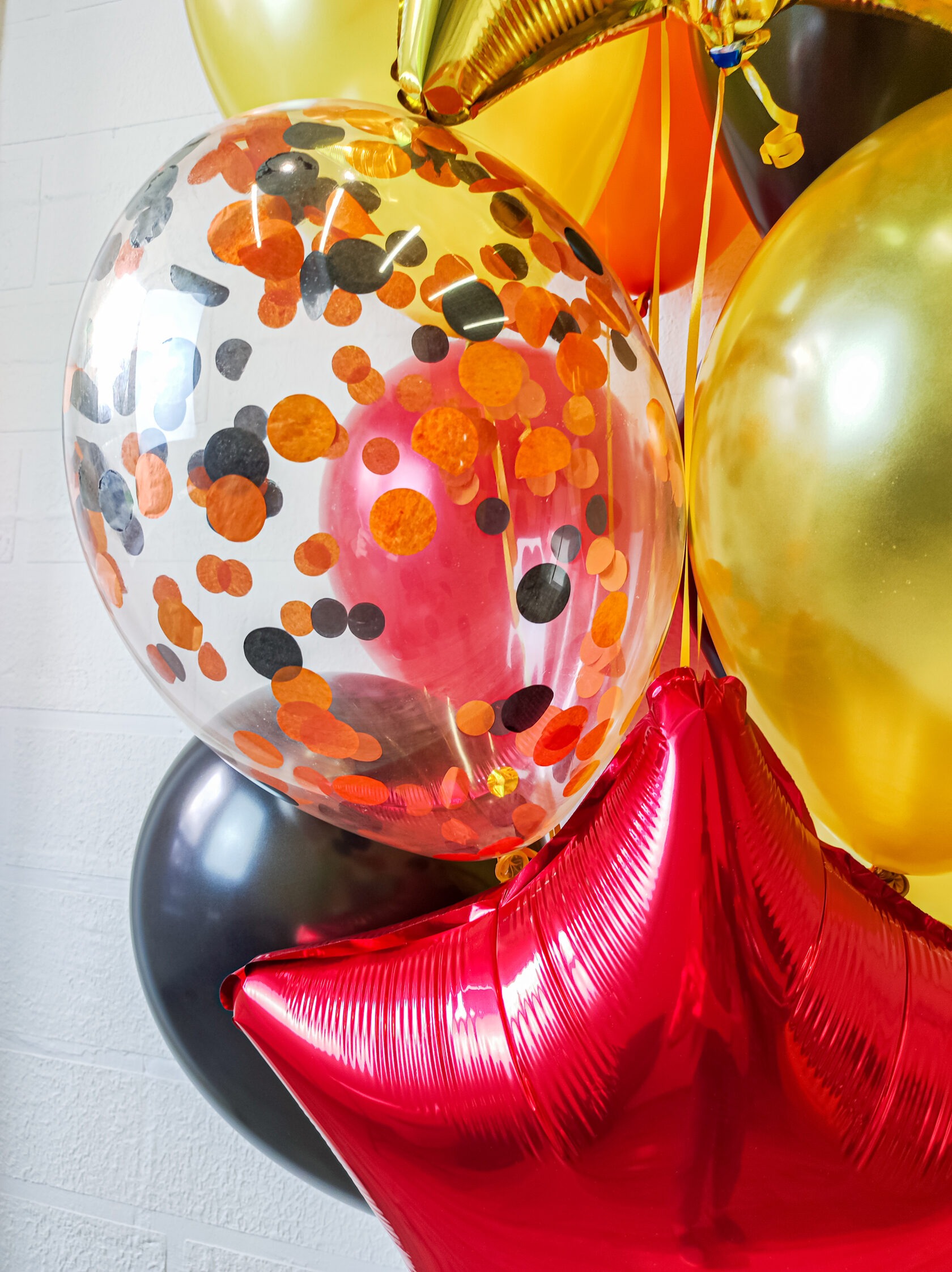 -шар с конфетти (микс оранжевый,черный крупный круг);