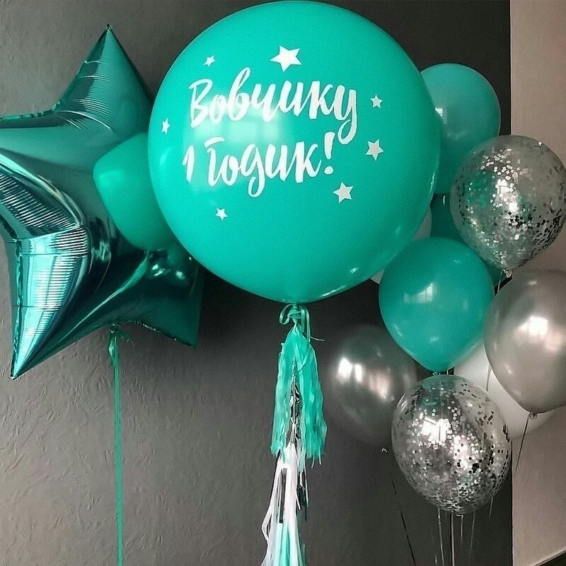 2)шар 60 см тиффани + тассел + ваша индивидуальная надпись