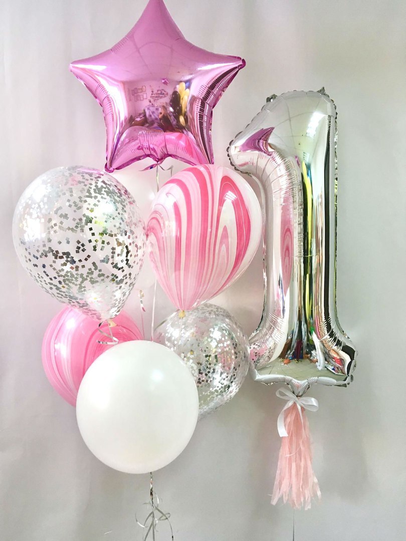 Набор шаров на 3 года с розовой коробкой-сюрприз