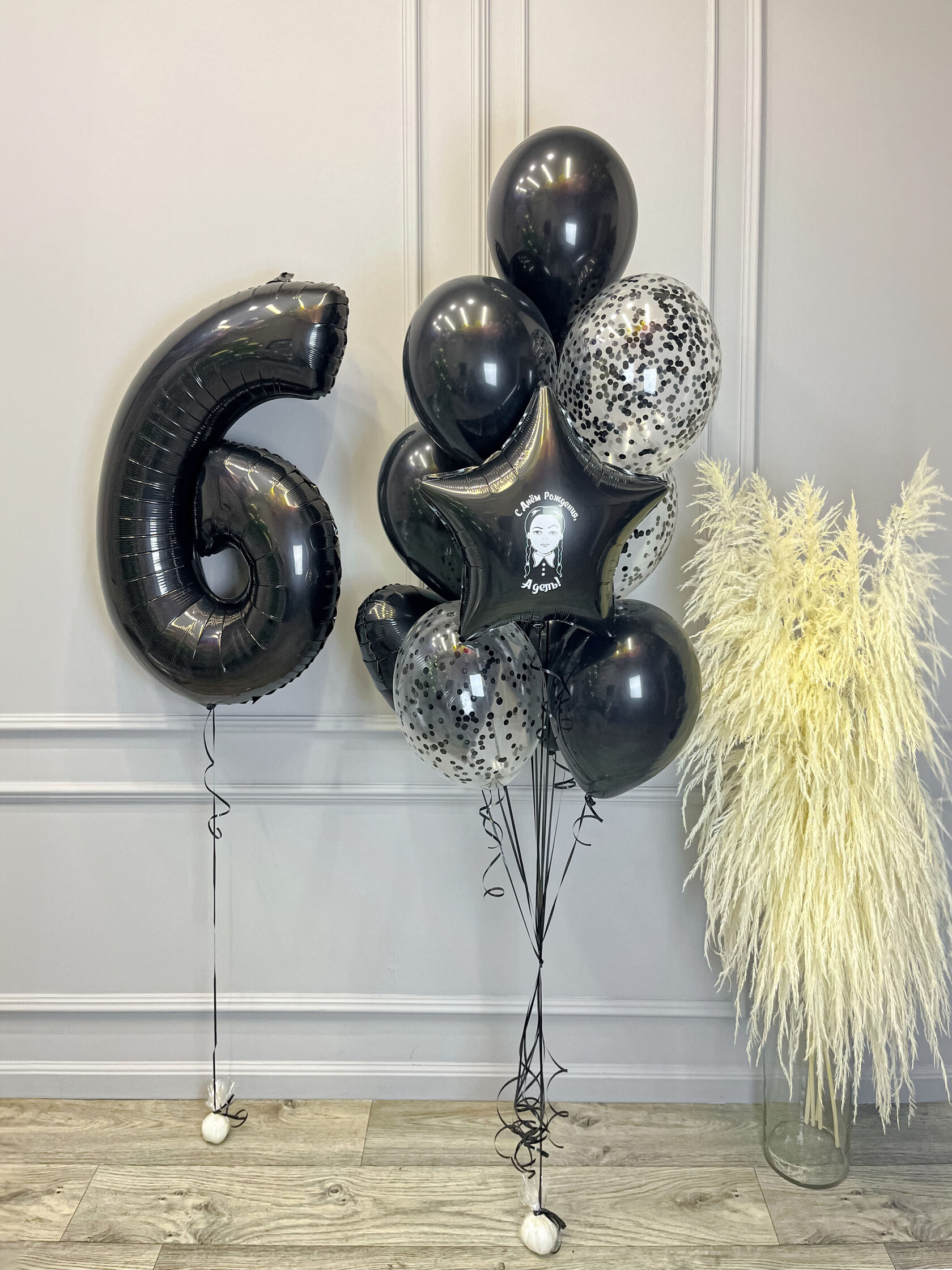 Черные шары с гелием для девочки в стиле “Уэнсдэй”