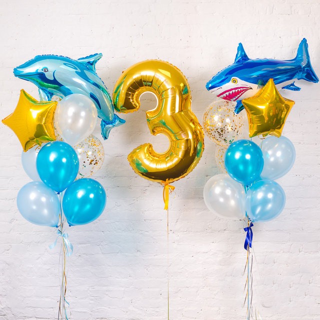 Детский сет в морской тематике из гелиевых шаров с элементами из фольги