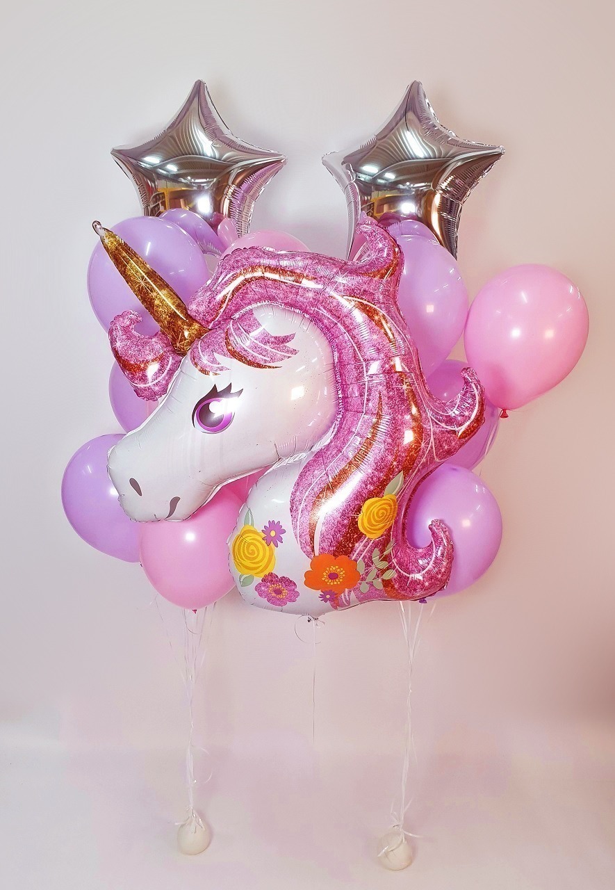 – Фольгированная фигура “Голова единорога розовая” на грузе