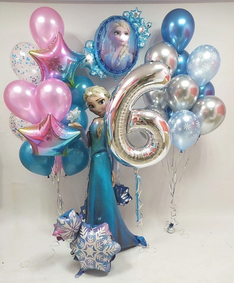 Два фонтана гелиевых шаров с ростовым шаром “Эльза” и цифрой