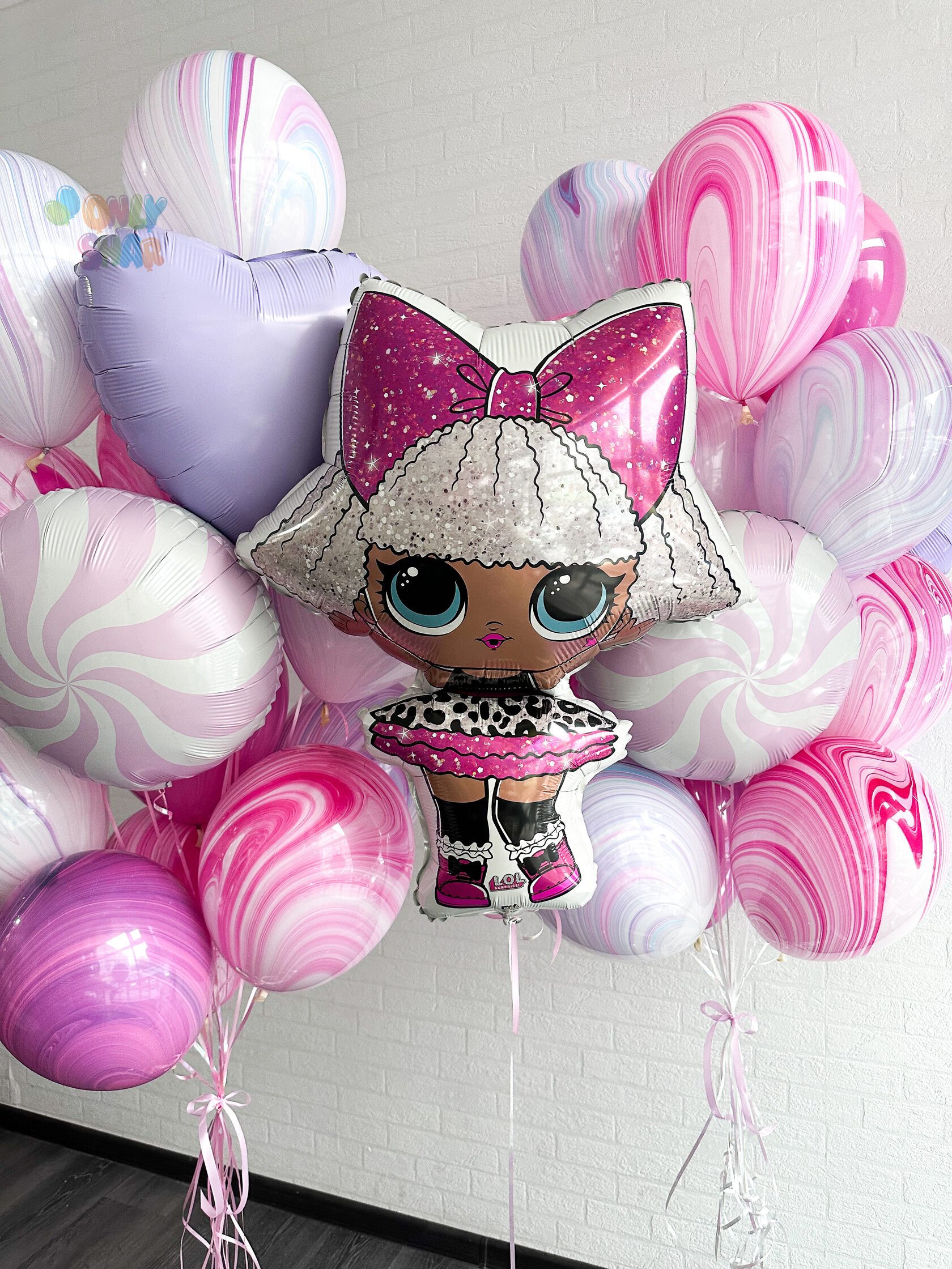 Два фонтана из гелиевых шаров с куклой ЛОЛ