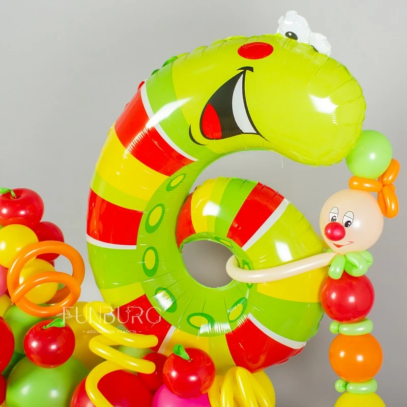 Яркая фигура с цифрой в форме веселой гусеницы, декорированная яблочками, идеально подойдет для веселого праздника!