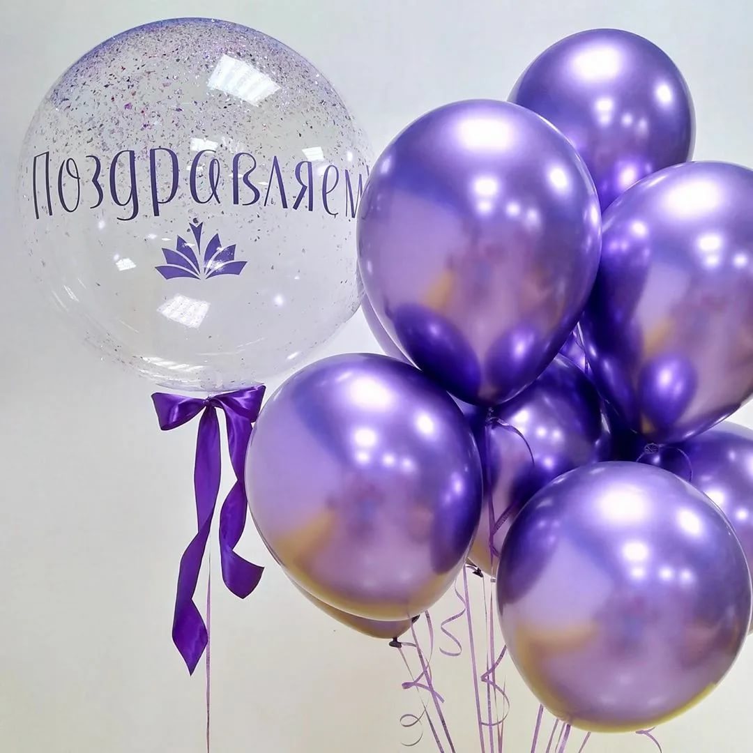 Фиолетовый сет из шаров хром и большим шаром с надписью