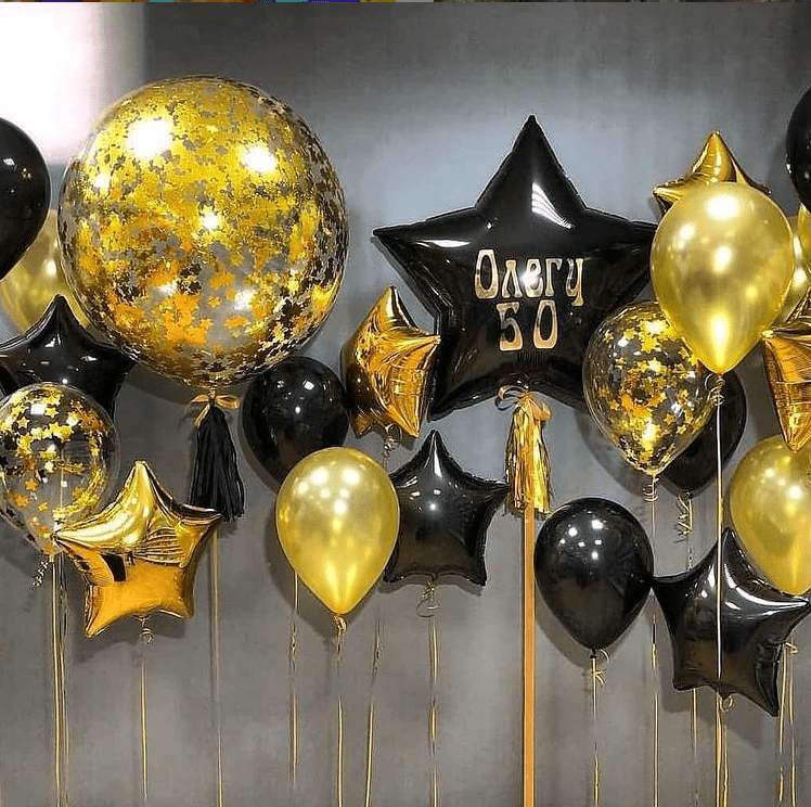 Фольгированная звезда черная 81 см с надписью – 1 шт