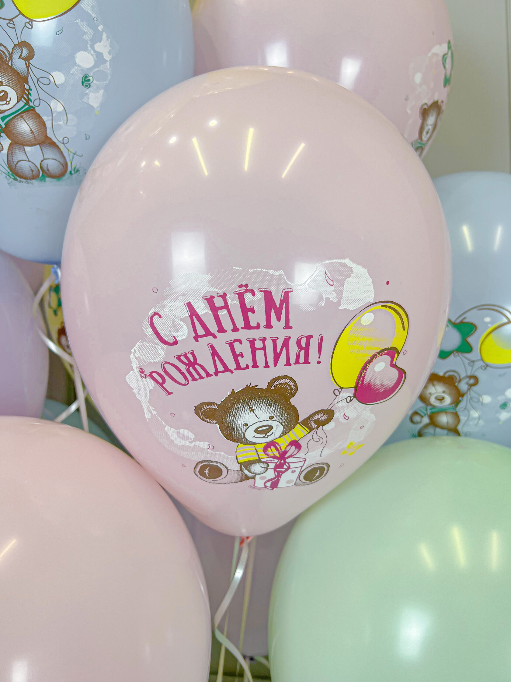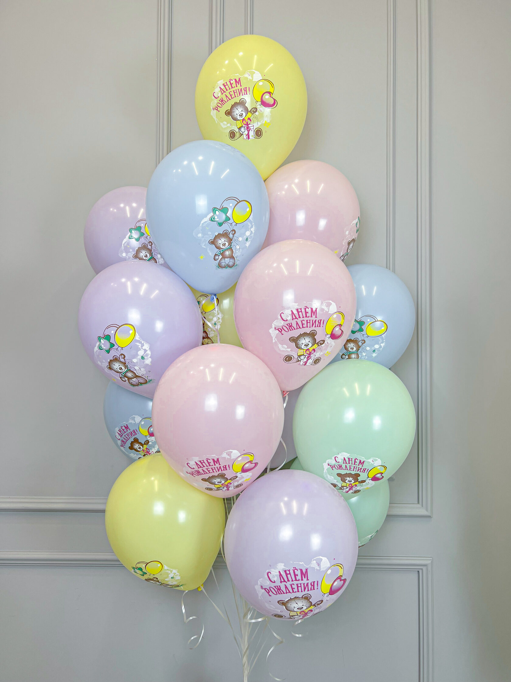 Фонтан из гелиевых шаров с медвежатами для девочки