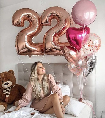 Фольгированные цифры 2 и 2 розовое золото на грузиках