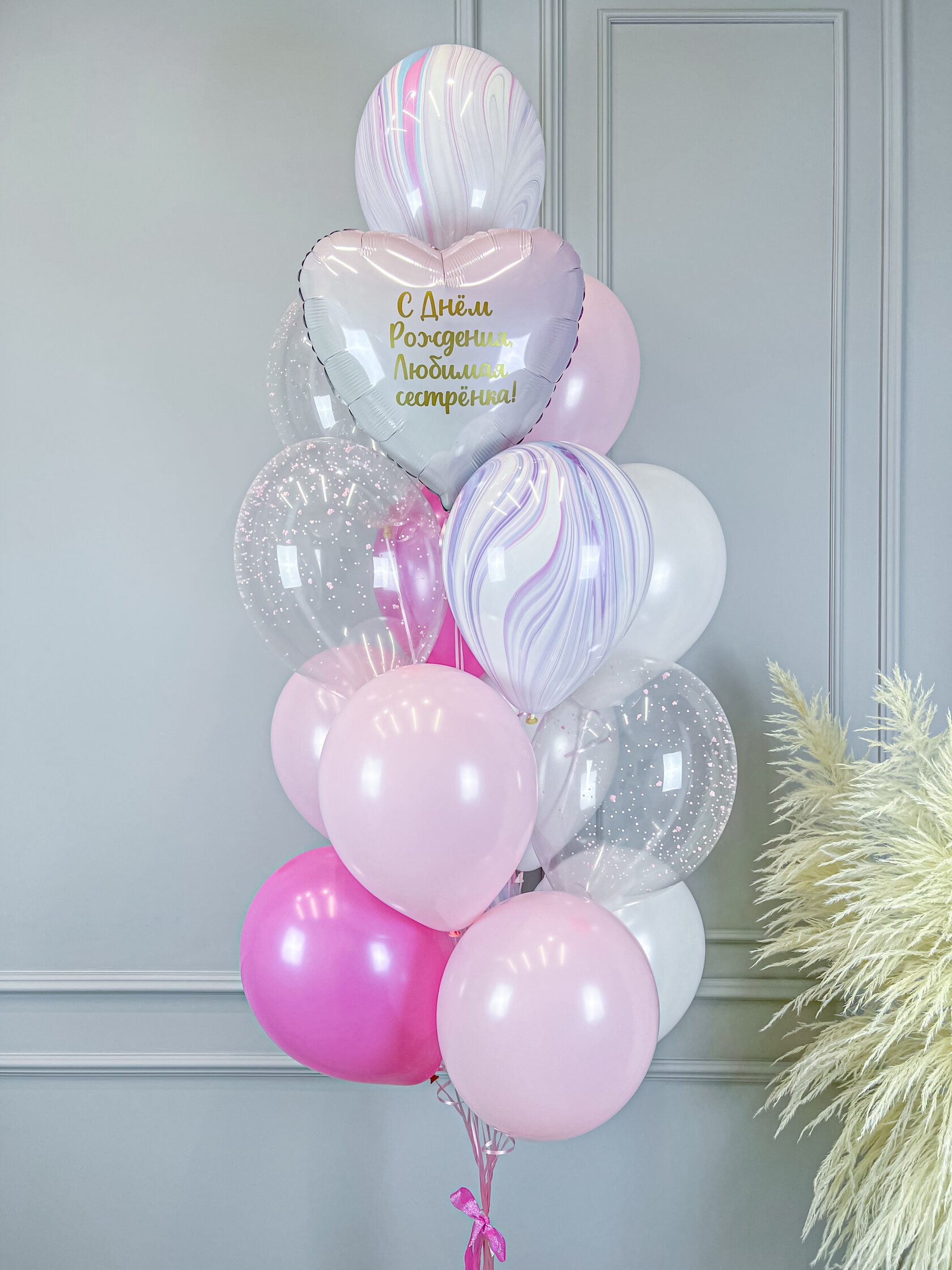 Фонтан шаров “Градиент” с золотой надписью