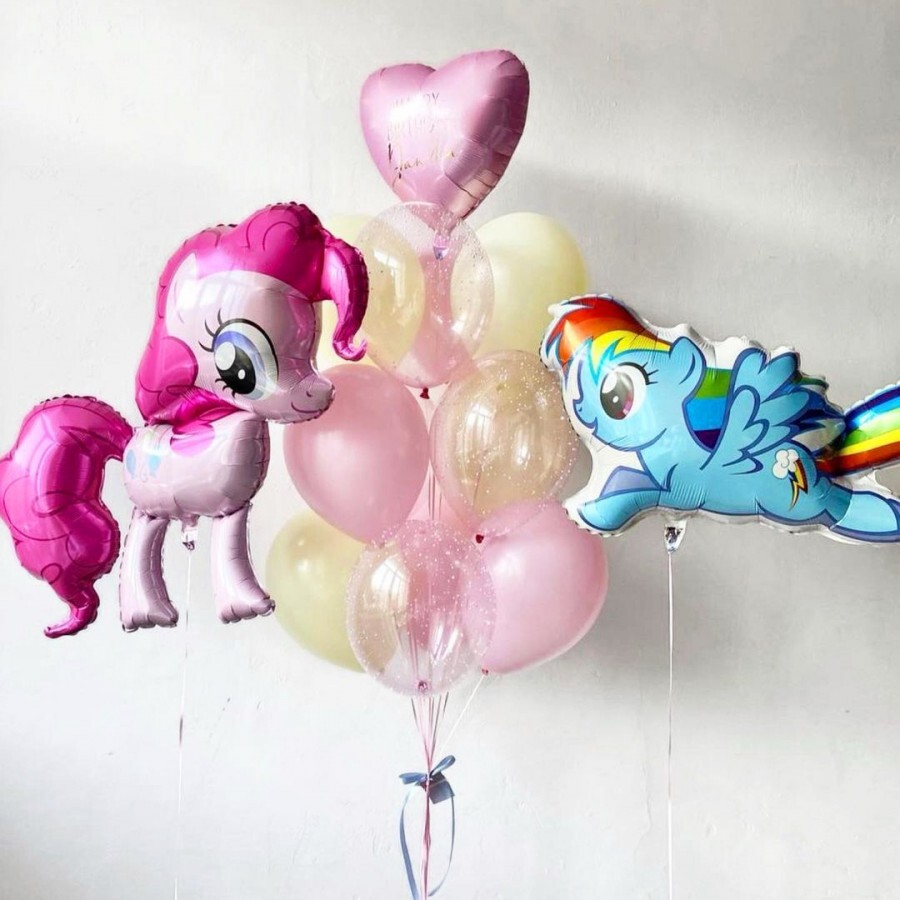 Фонтан шаров макарунс с именным шаром в стиле “Май Литл Пони”
