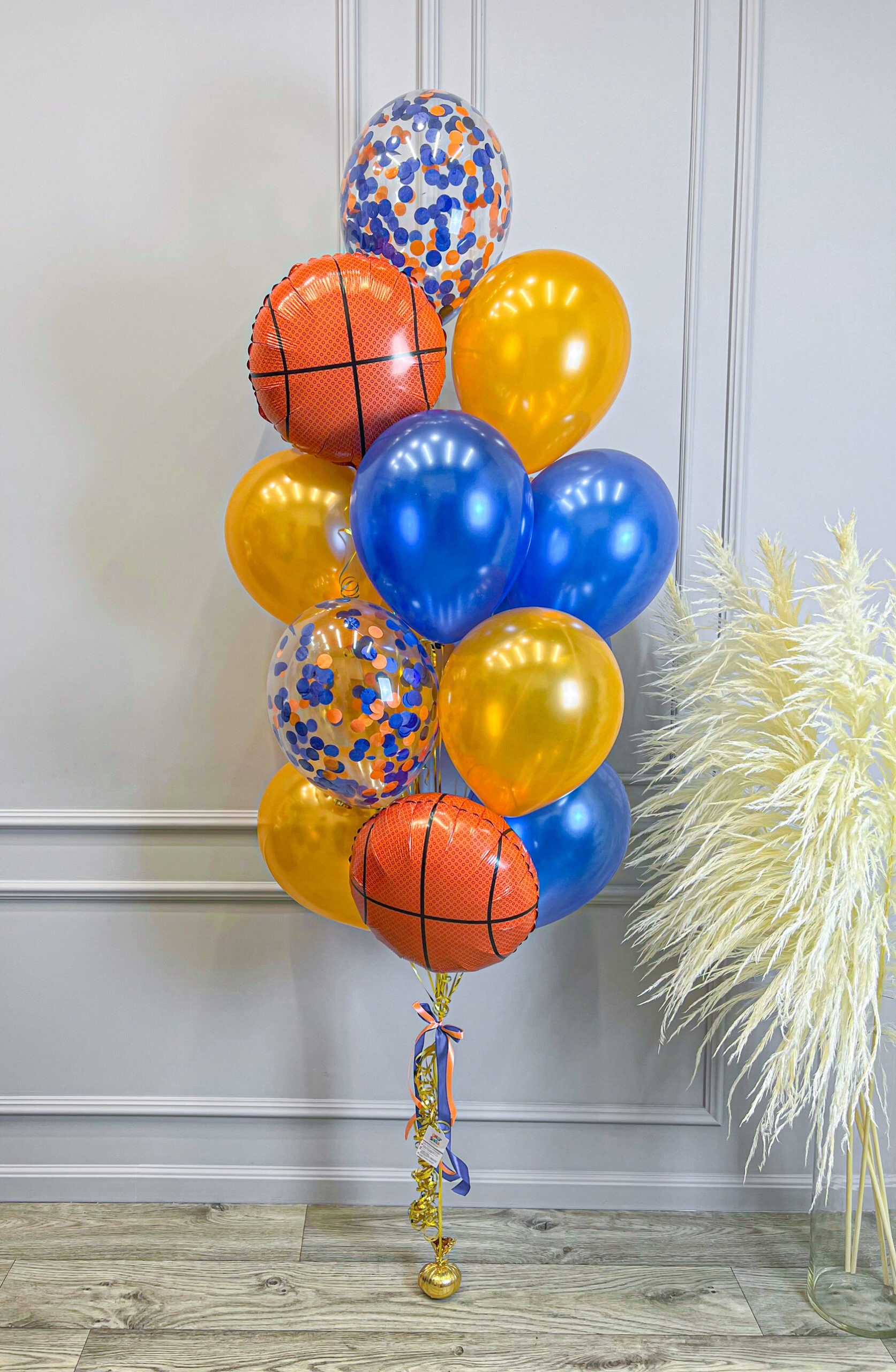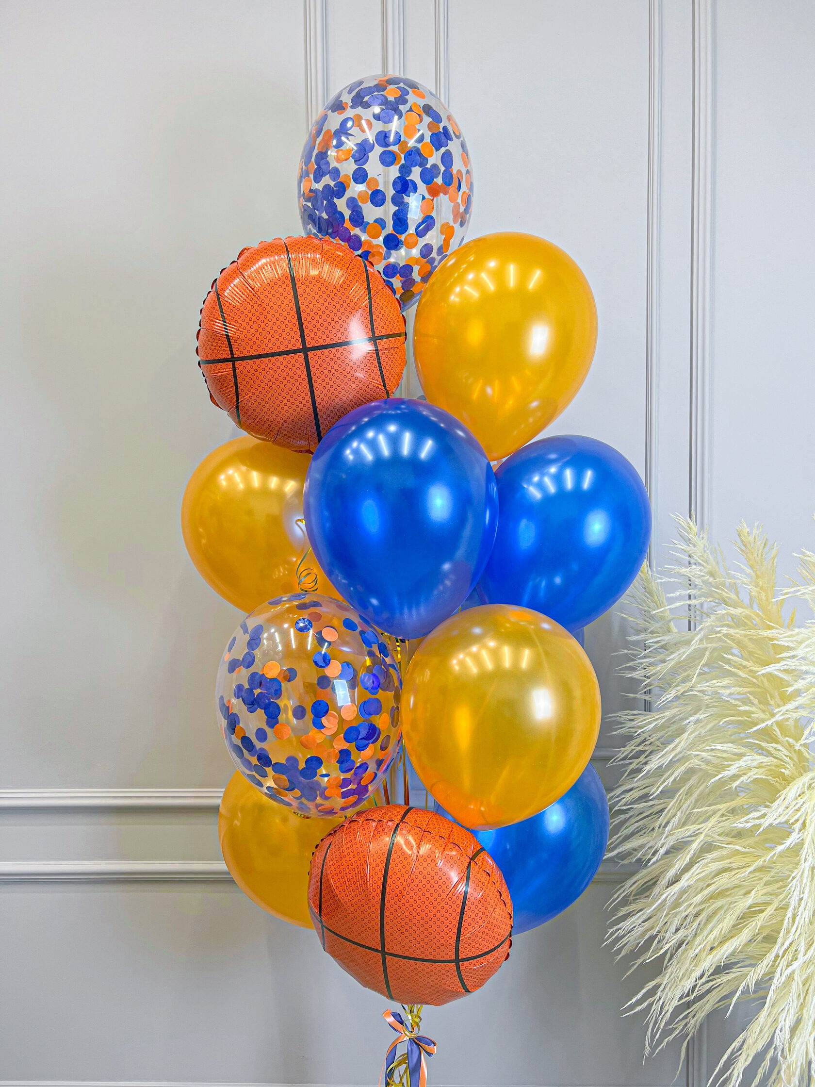 – 3 шара с конфетти (синий + оранжевый круг)