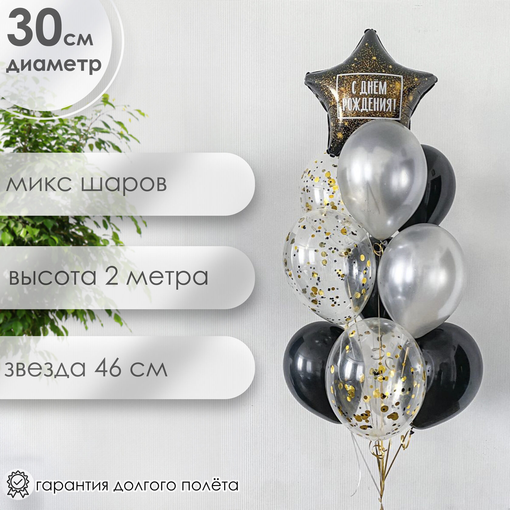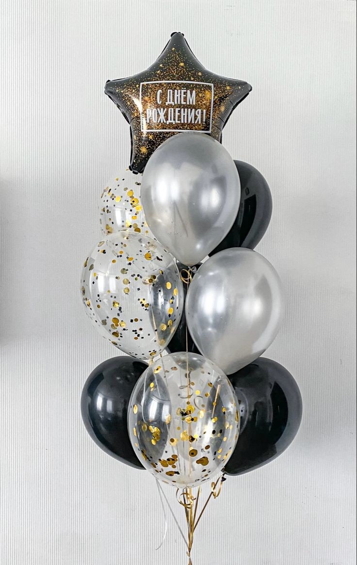 Фонтан шаров с черной звездой на день рождения