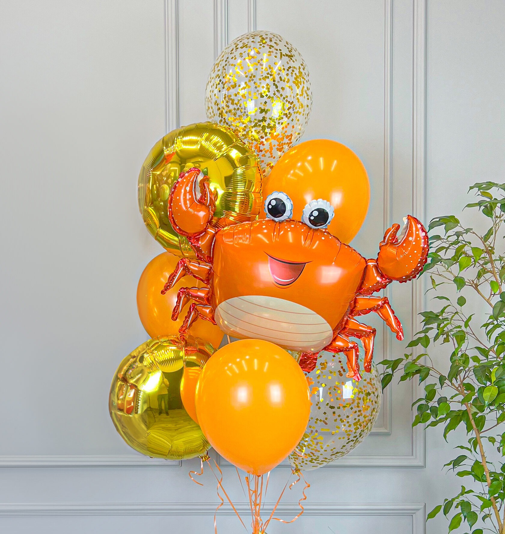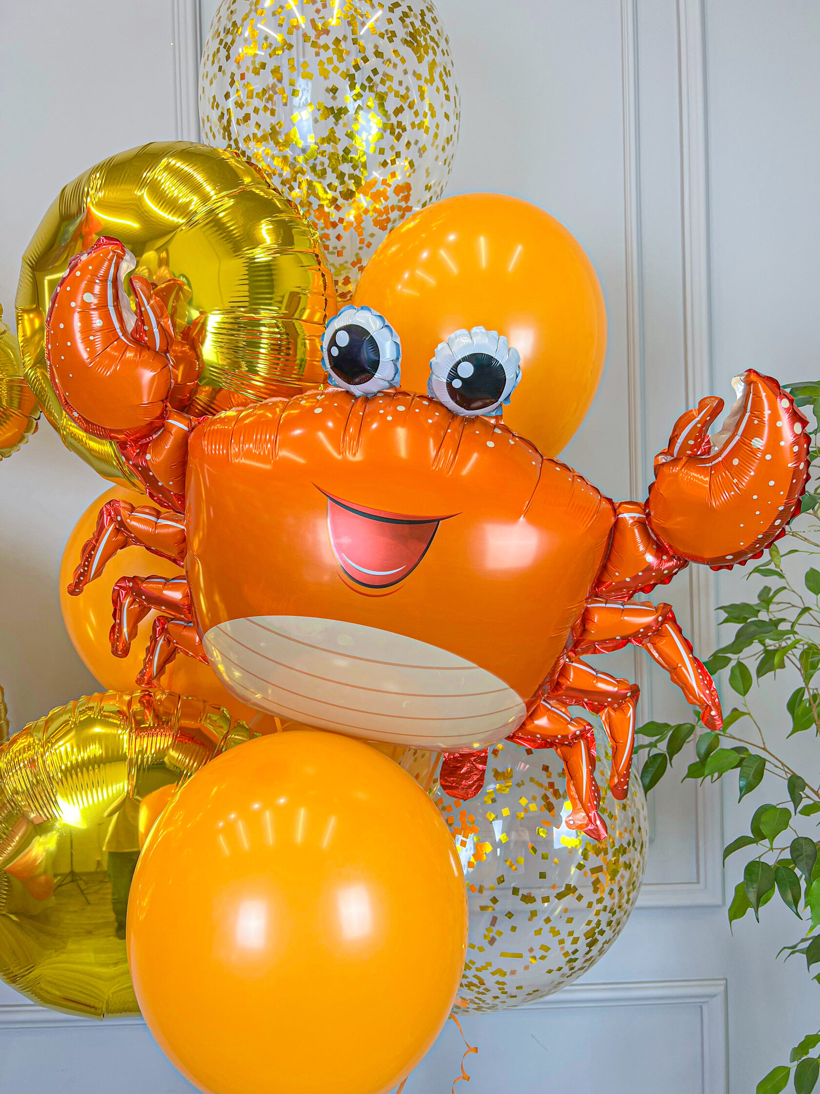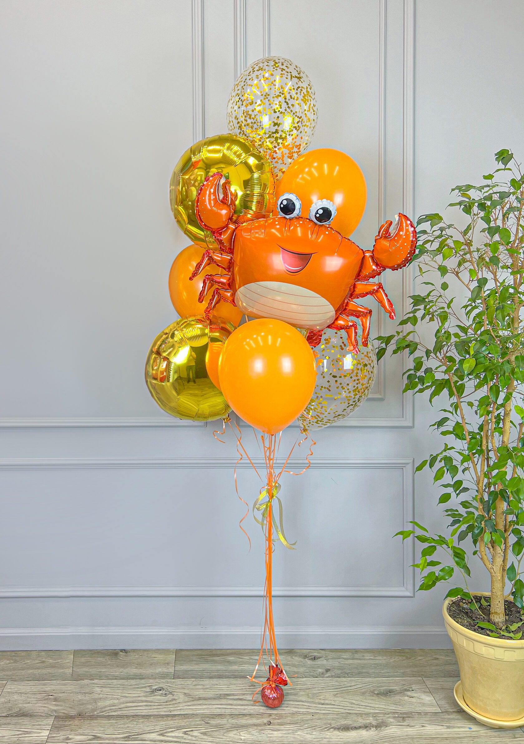 Фонтан шаров с крабом в оранжевом цвете