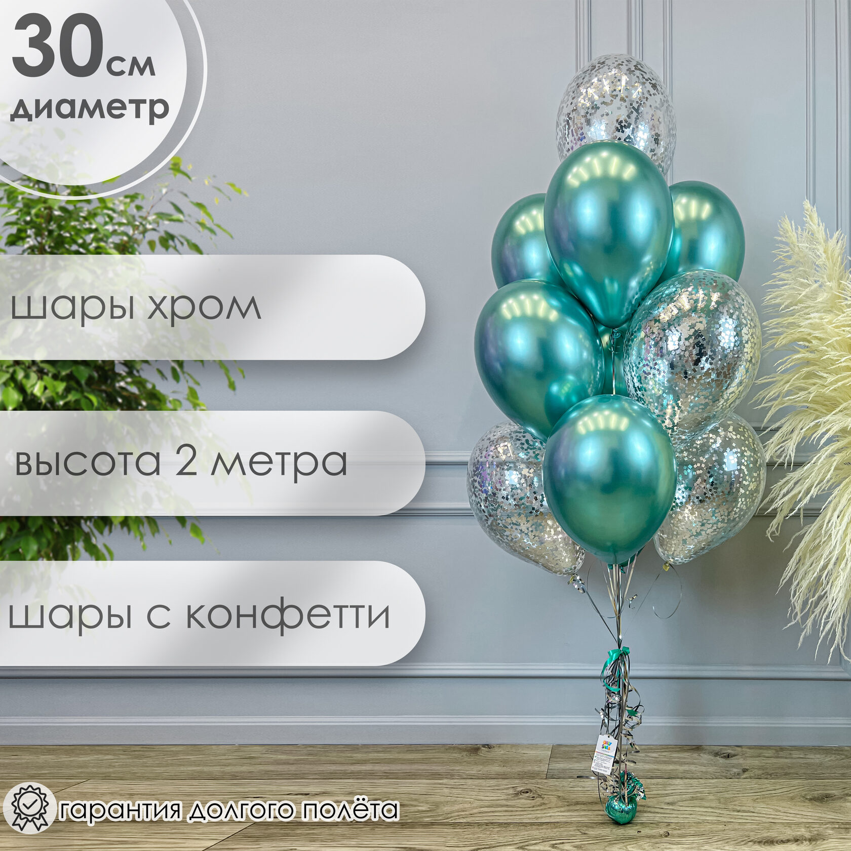 -шар конфетти серебро – 4 шт;