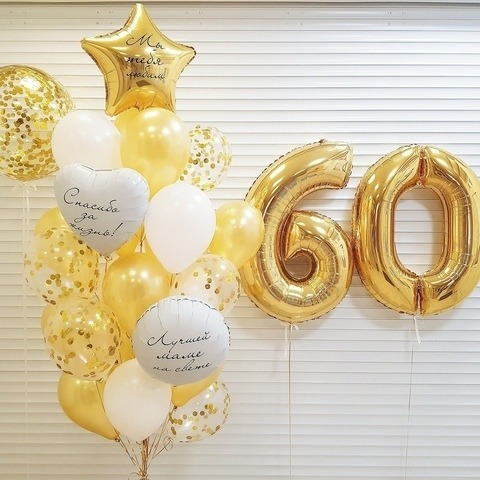 Фонтаны из шаров с цифрой 60 для “Мамы”