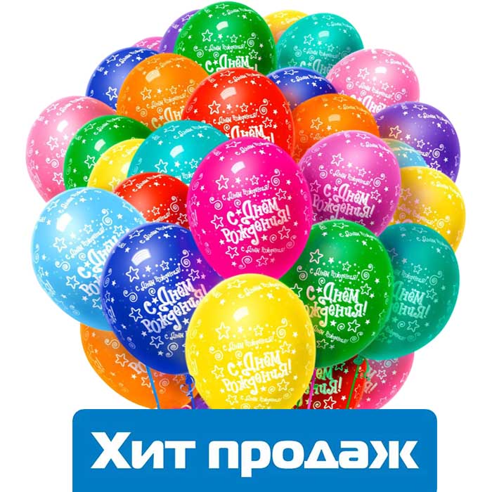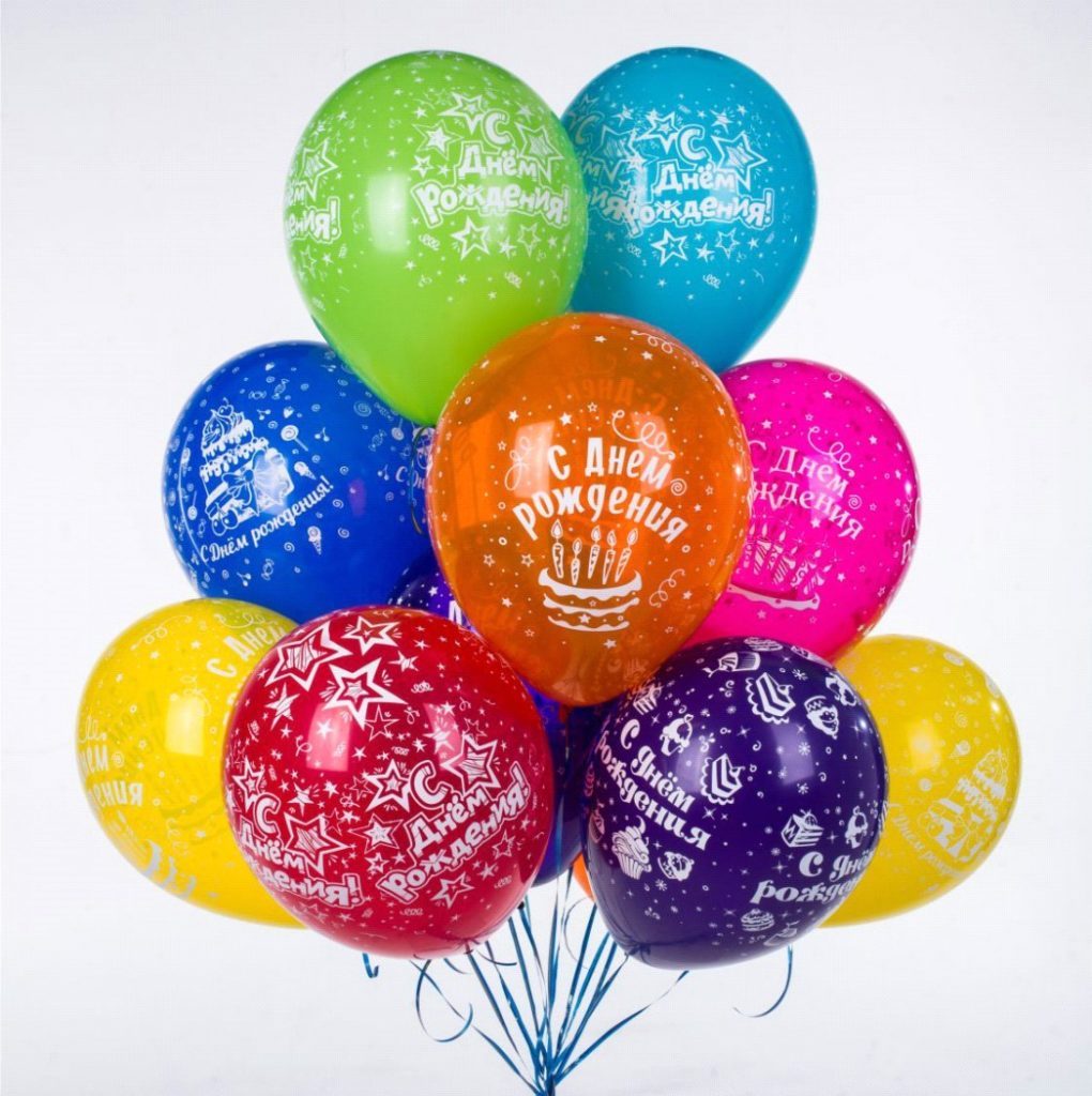 Гелиевые разноцветные шары “С днём рождения” 11 штук