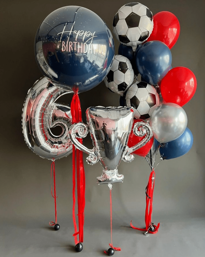 Гелиевые шары в футбольной тематике с большим шаром и цифрой
