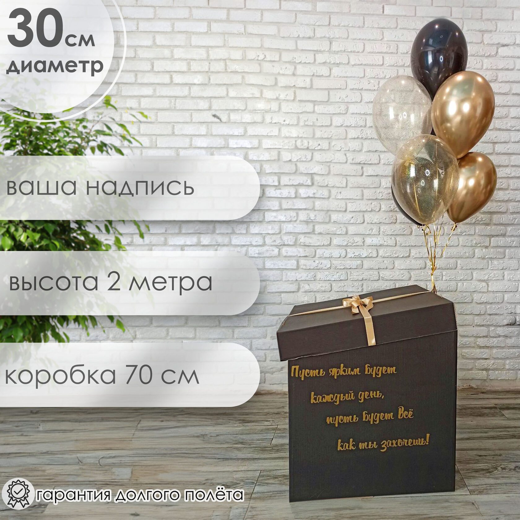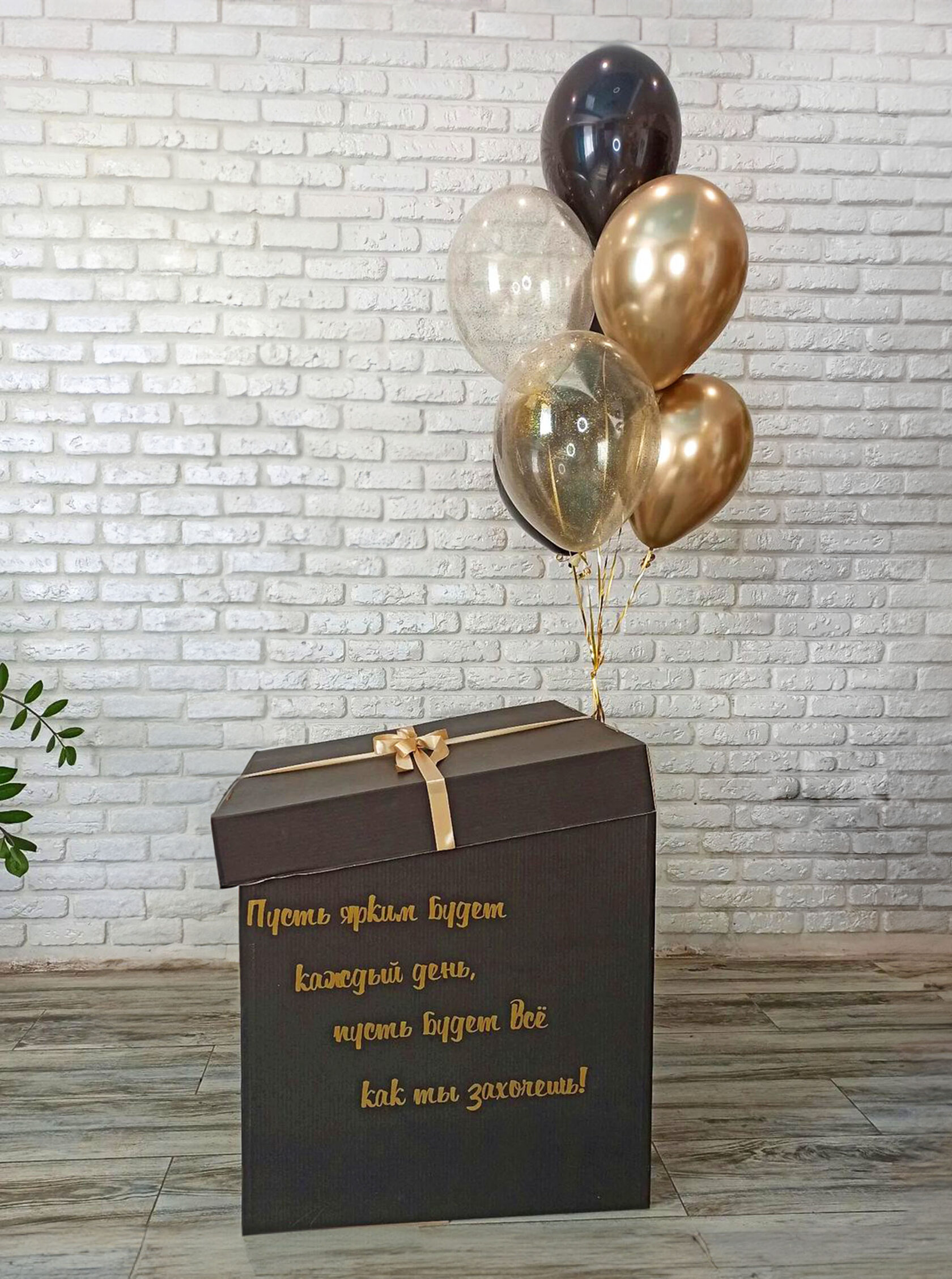 Гелиевые шары в коробке для мужчины в черном и золотом цвете