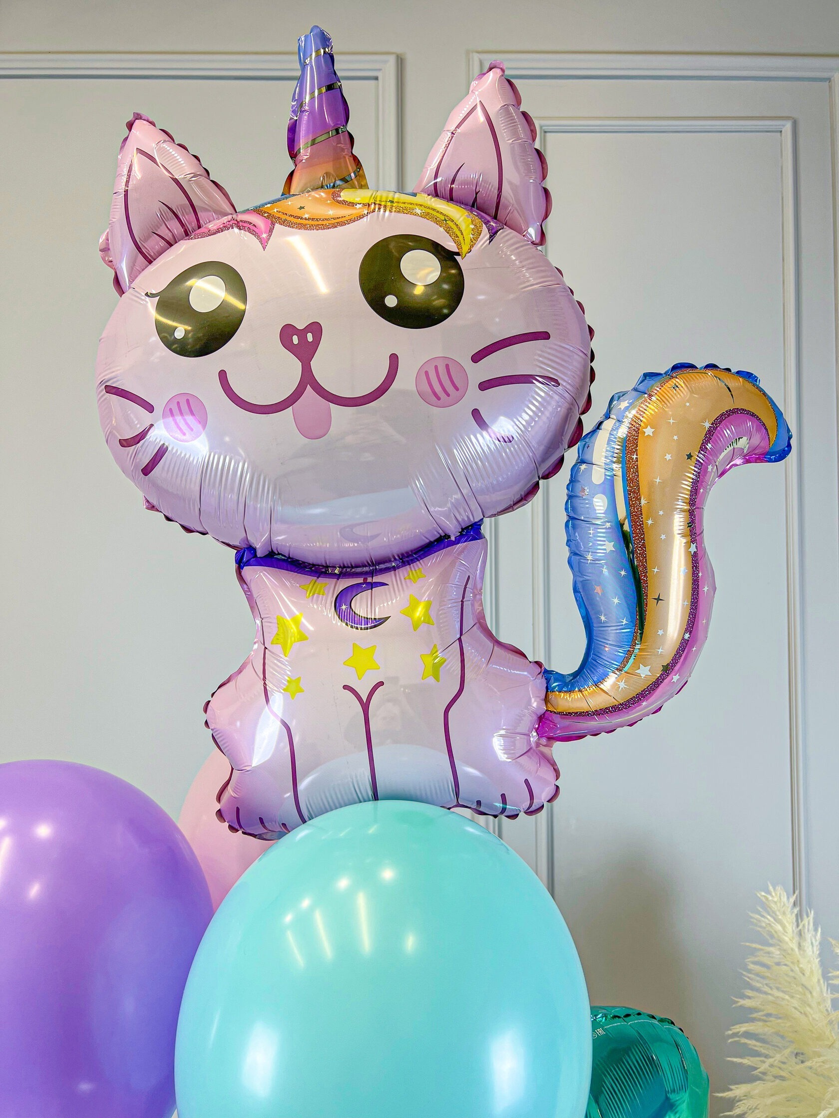 – 1 фольгированная фигура “Кошка-единорог”