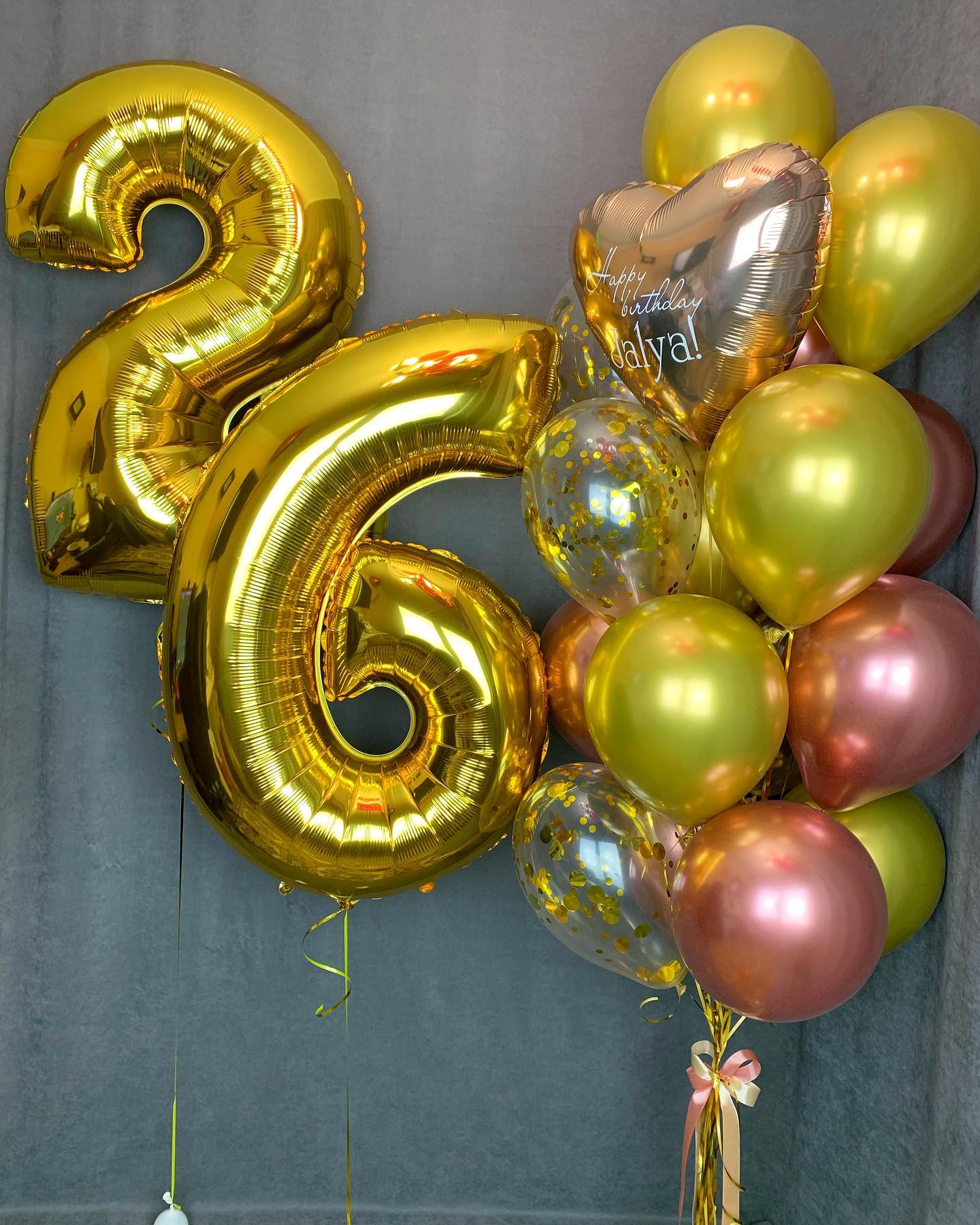 Готовая композиция на 26 лет девушке в золотых и розовых оттенках