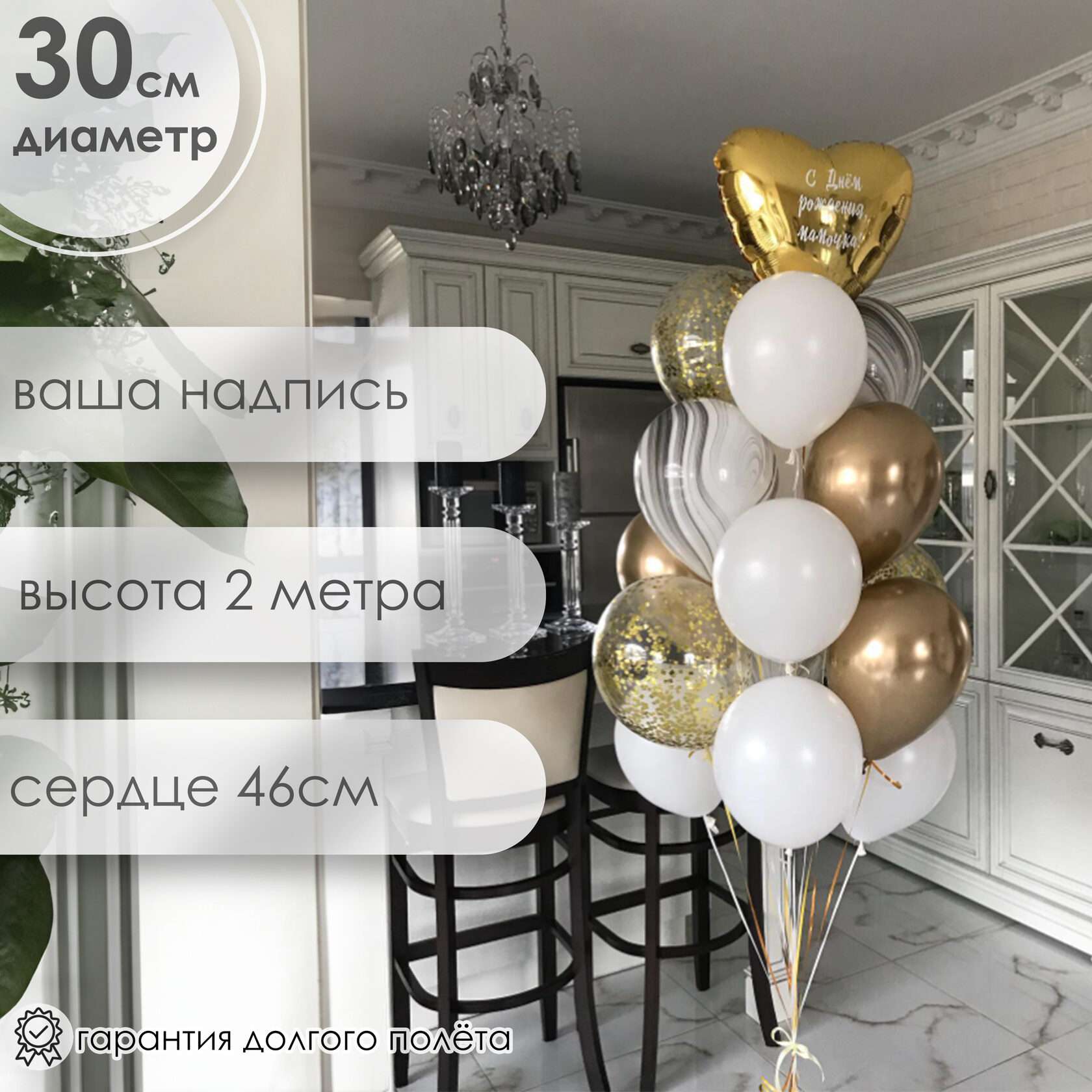 -фольгированное сердце золото 46 см + ваша надпись – 1 шт.