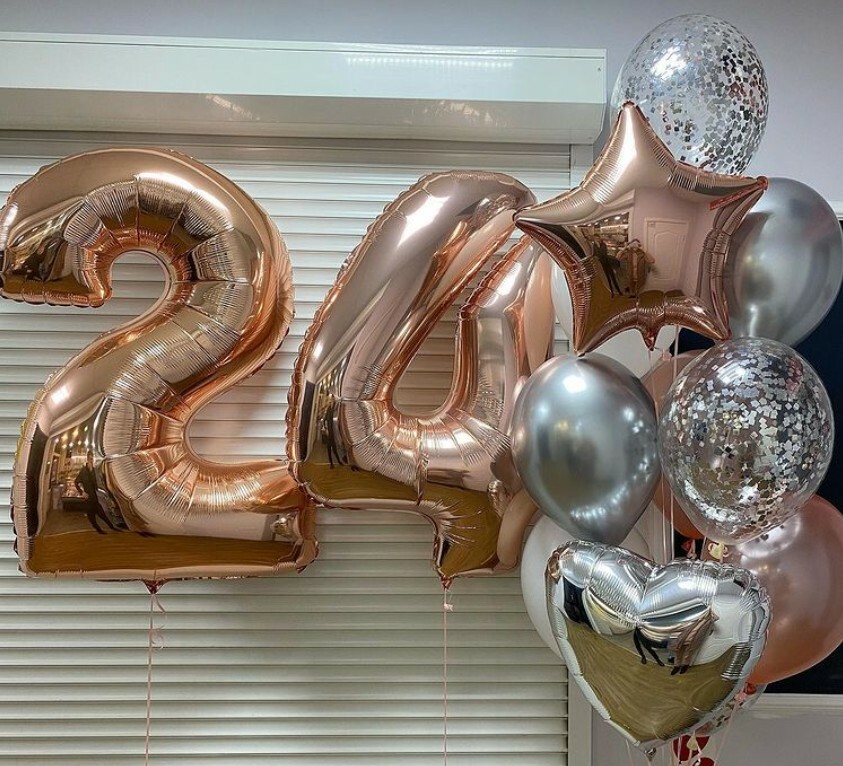 Готовое решение с цифрами девушке на день рождения в цветах розовое золото