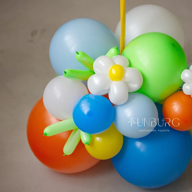 В стоимость не включен выезд оформителя для монтажа – она рассчитывается индивидуально, исходя из особенностей монтажа (например, сложности и условий крепления). Монтаж этого оформления достаточно несложный, поэтому если вы решите самостоятельно украсить пространство, мы можем проконсультировать вас по поводу крепления элементов.