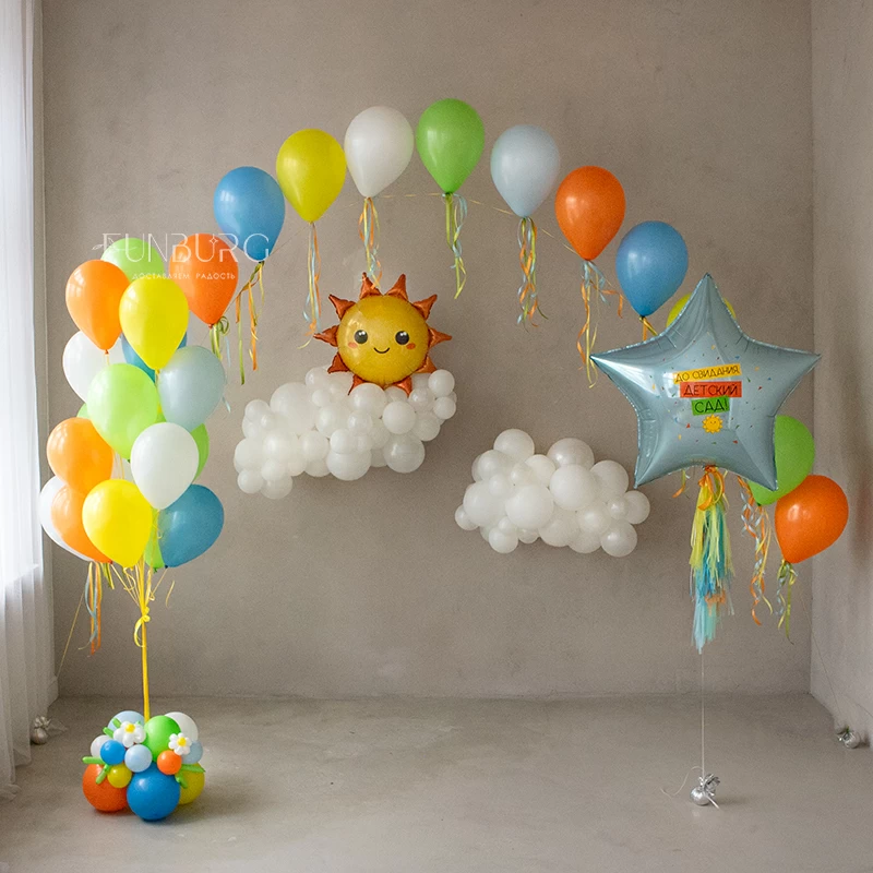Базовый состав включает в себя такое количество элементов оформления, которого будет достаточно для лаконичного оформления небольшого помещения или фотозоны, но вы можете самостоятельно или при консультации с нашим менеджером регулировать количество и состав элементов, увеличивая или уменьшая их. А также вы можете выбрать другие цвета, и мы изготовим оформление исходя из ваших пожеланий!