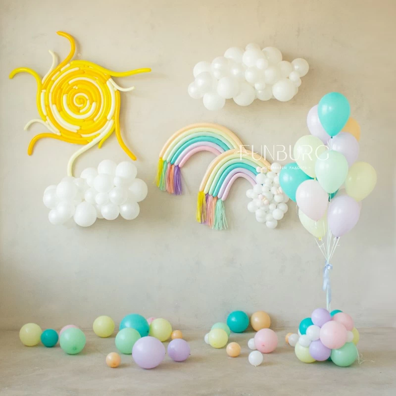 Базовый состав включает в себя такое количество элементов оформления, которого будет достаточно для лаконичного оформления небольшого помещения или фотозоны, но вы можете самостоятельно или при консультации с нашим менеджером регулировать количество и состав элементов, увеличивая или уменьшая их. А также вы можете выбрать другие цвета, и мы изготовим оформление исходя из ваших пожеланий.