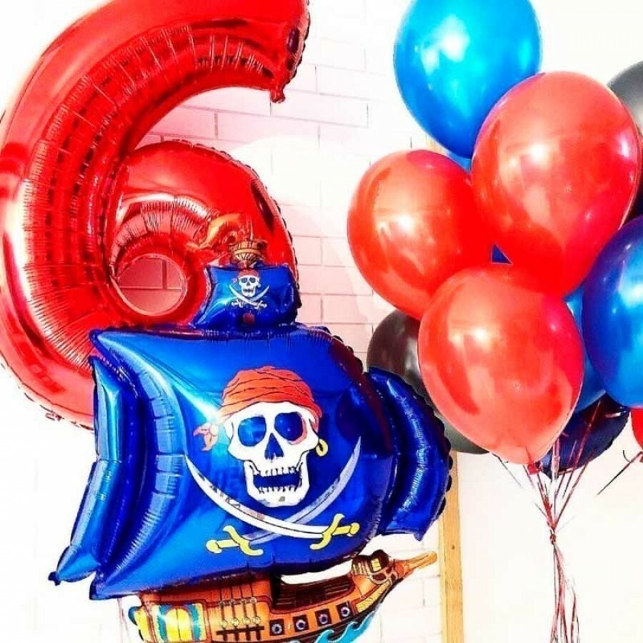 Фольгированная фигура шар “Пиратский корабль” на грузике -1 шт