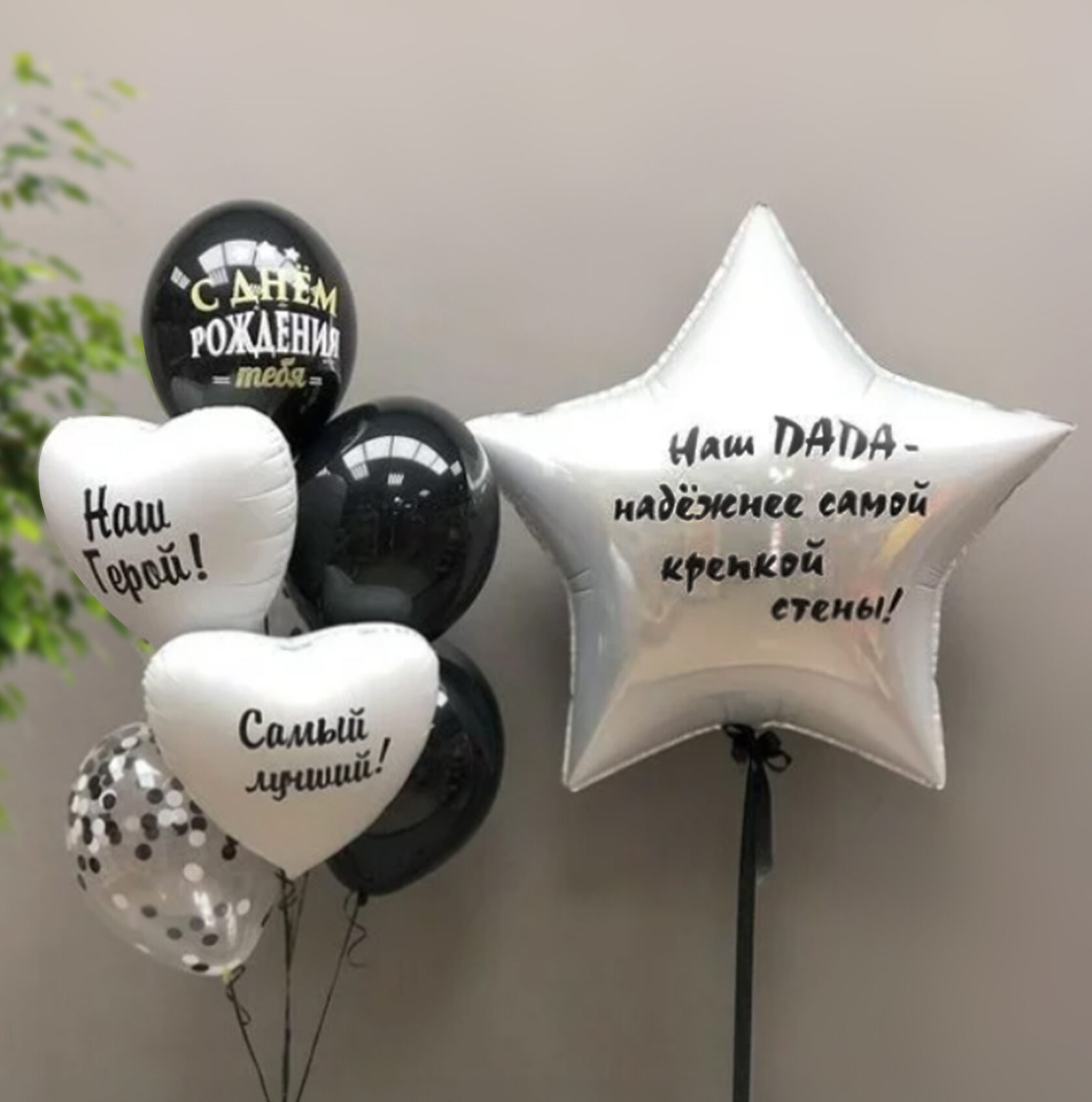 фольгированная звезда белая 80 см + ваша надпись на грузике.