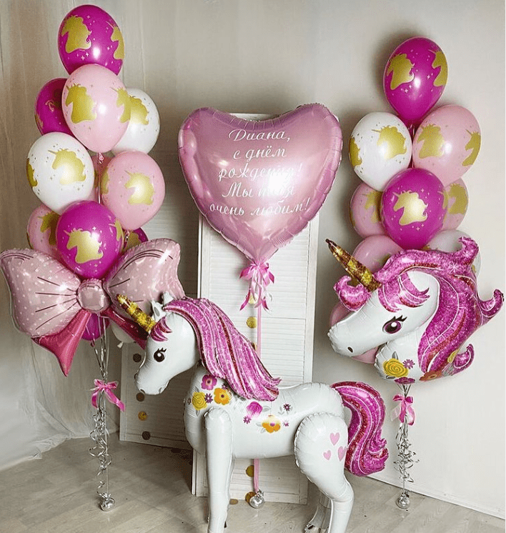 Композиция из латексных и фольгированных шаров “Единорог”