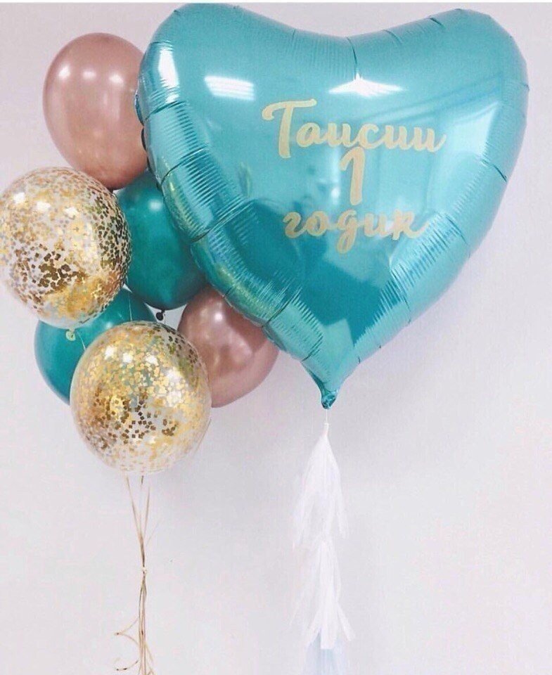 Фольгированное сердце 81 см тиффани с индивидуальной надписью на грузике.