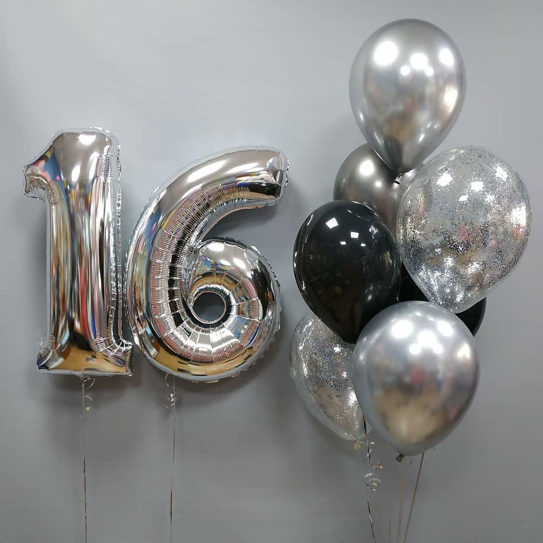 Фольгированные цифры 16 серебро