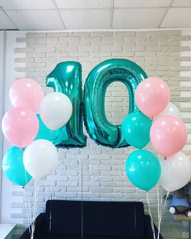 Композиция из шаров на 10 лет девочке в цвете тиффани